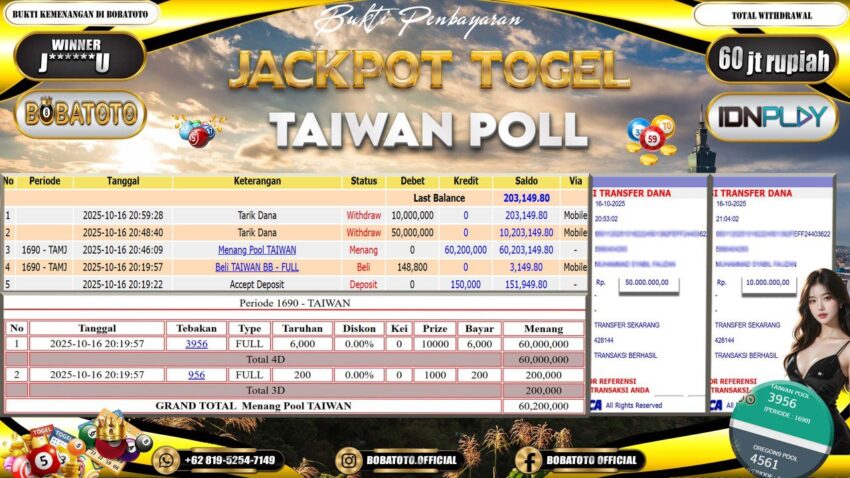 BOBATOTO JACKPOT TOGEL TAIWAN Rp 60,000,000,- LUNAS!!